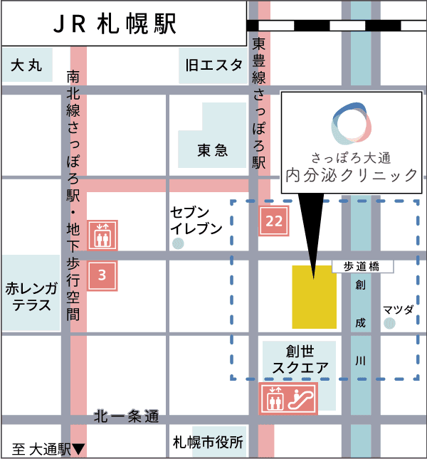 22番出口(東豊線さっぽろ駅側)から徒歩2分、チカホ(地下歩行空間)3番出口から徒歩4分
